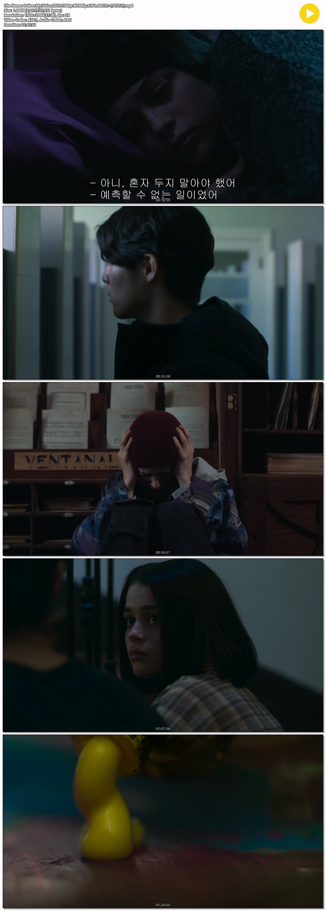 NEW HOT 영화 #영화 #멜로 #목소리를 [영화-멜로] 내 목소리를 따라와.Follow My Voice.2025.1080p.한글.. 인운트 2026-04-24 6,049 조회 276 좋아요 다운로드 파일 (1개) [영화-멜로] 내 목소리를 따라와.Follow My Voice.2025.1080p.한글자막 1.9G 다운로드 추천 276 북마크 공유 목록 개인 소장 목적으로만 이용 가능합니다. 재배포·상업적 이용 금지. TAGS #영화 #멜로 #목소리를 #따라와 #Follow
