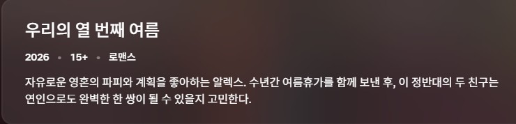 NEW HOT 영화 #영화 #멜로 #우리의 [영화-멜로] 우리의 열 번째 여름.People.We.Meet.On.Vacation.202.. 인운트 2026-04-24 6,259 조회 357 좋아요 다운로드 파일 (1개) [영화-멜로] 우리의 열 번째 여름.People.We.Meet.On.Vacation.2026.1080.. 2.2G 다운로드 추천 357 북마크 공유 목록 개인 소장 목적으로만 이용 가능합니다. 재배포·상업적 이용 금지. TAGS #영화 #멜로 #우리의 #번째 #여름