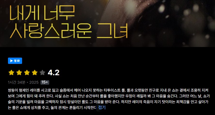 NEW 영화 #영화 #멜로 #내게 [영화-멜로] 내게 너무 사랑스러운 그녀.Marked Men.2025.1080p.한.. 인운트 2026-04-24 3,791 조회 476 좋아요 다운로드 파일 (1개) [영화-멜로] 내게 너무 사랑스러운 그녀.Marked Men.2025.1080p.한글자막 1.7G 다운로드 추천 476 북마크 공유 목록 개인 소장 목적으로만 이용 가능합니다. 재배포·상업적 이용 금지. TAGS #영화 #멜로 #내게 #너무 #사랑스러운