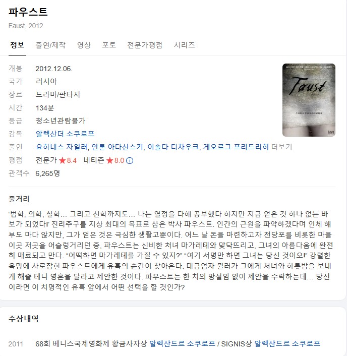 NEW HOT 영화 #영화 #드라마 #파우스트 [영화-드라마 19] 파우스트.Faust.2011.1080p.BluRay.한글자막 인운트 2026-04-24 6,251 조회 429 좋아요 다운로드 파일 (1개) [영화-드라마 19] 파우스트.Faust.2011.1080p.BluRay.한글자막 2.4G 다운로드 추천 429 북마크 공유 목록 개인 소장 목적으로만 이용 가능합니다. 재배포·상업적 이용 금지. TAGS #영화 #드라마 #파우스트 #Faust #BluRay