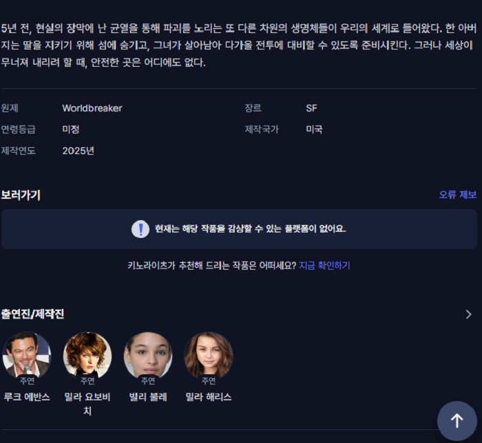 NEW 영화 #월드브레이커 #밀라요보비치 #주연 [월드브레이커] 밀라요보비치 주연 SF 생존호러 자체자막 pksy2313 2026-04-24 3,261 조회 357 좋아요 다운로드 파일 (1개) [월드브레이커] 밀라요보비치 주연 SF 생존호러 자체자막 1.6G 다운로드 추천 357 북마크 공유 목록 개인 소장 목적으로만 이용 가능합니다. 재배포·상업적 이용 금지. TAGS #월드브레이커 #밀라요보비치 #주연 #SF #생존호러