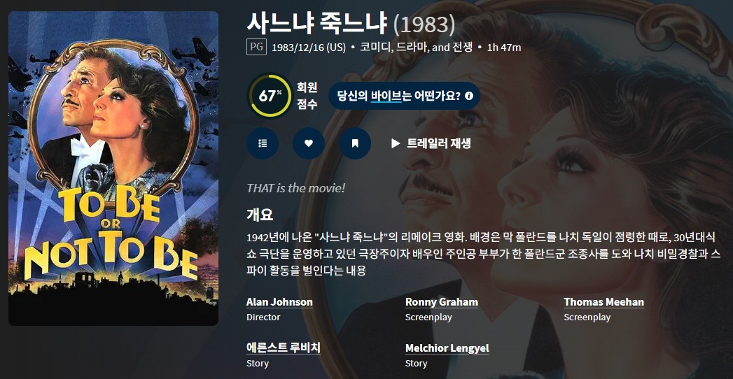 NEW 영화 #영화 #코미디 #사느냐 [영화-코미디] 사느냐 죽느냐.To.Be.Or.Not.To.Be.1983.1080p.BluR.. 인운트 2026-04-24 3,101 조회 471 좋아요 다운로드 파일 (1개) [영화-코미디] 사느냐 죽느냐.To.Be.Or.Not.To.Be.1983.1080p.BluRay.한.. 2.0G 다운로드 추천 471 북마크 공유 목록 개인 소장 목적으로만 이용 가능합니다. 재배포·상업적 이용 금지. TAGS #영화 #코미디 #사느냐 #죽느냐 #To