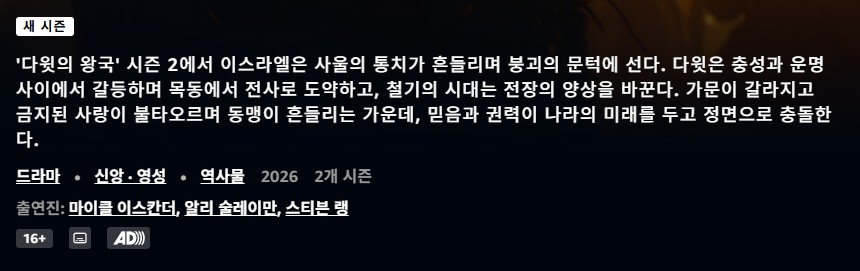 HOT 드라마 #하우스 #오브 #다윗 [ 하우스 오브 다윗 ] 2시즌 1-8화 [완] 1080p 고화질 한글자막 fjdlkas 2026-04-22 6,922 조회 300 좋아요 다운로드 파일 (1개) 하우스 오브 다윗 2시즌 1-8화 [완] 1080p 고화질 한글자막 4.3G 다운로드 추천 300 북마크 공유 목록 개인 소장 목적으로만 이용 가능합니다. 재배포·상업적 이용 금지. TAGS #하우스 #오브 #다윗 #2시즌 #8화