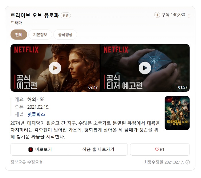 HOT 드라마 #트ㄹㅏㅇㅣ브 #오브 #유로ㅍㅏ [트ㄹㅏㅇㅣ브 오브 유로ㅍㅏ] 2074년 대재앙이 휩쓸고 간 지구 6.. pksy2313 2026-04-27 6,204 조회 456 좋아요 다운로드 파일 (1개) [트ㄹㅏㅇㅣ브 오브 유로ㅍㅏ] 2074년 대재앙이 휩쓸고 간 지구 6부작 완.. 3.0G 다운로드 추천 456 북마크 공유 목록 개인 소장 목적으로만 이용 가능합니다. 재배포·상업적 이용 금지. TAGS #트ㄹㅏㅇㅣ브 #오브 #유로ㅍㅏ #2074년 #대재앙이