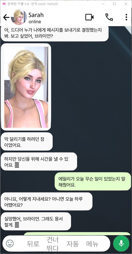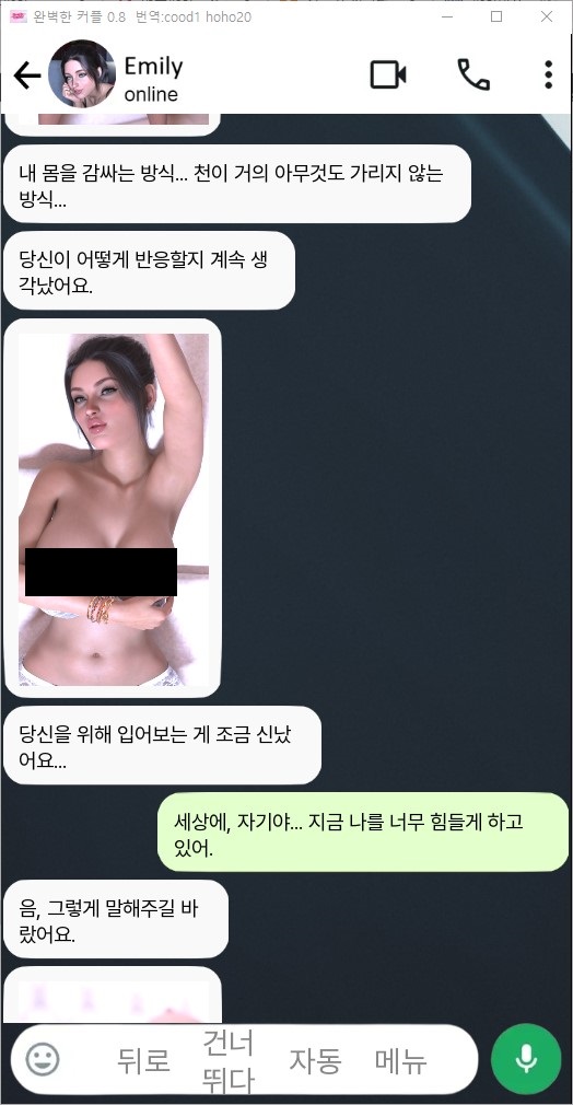 '완벽한 커플' 은 휴대폰 문자 메시지를 통해 아름다운 아내 에밀리 와 다른 사람들 과 소통하는 게임입니다 .
