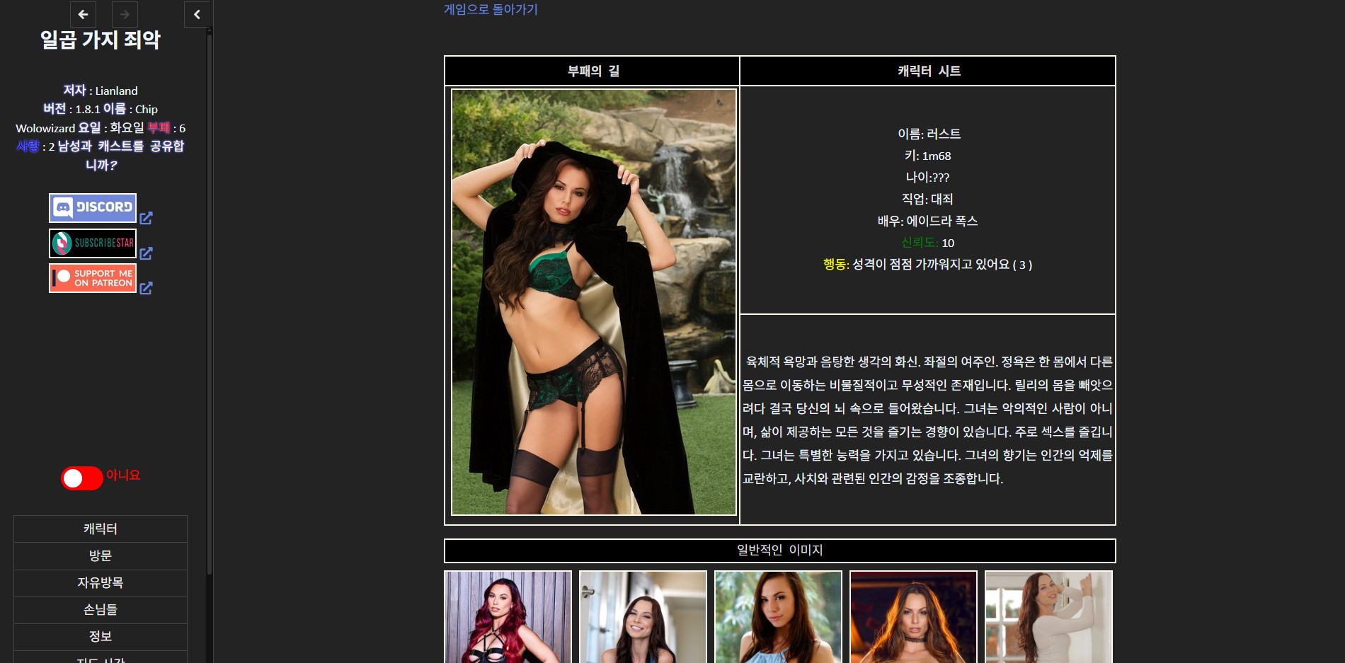 마을에서 평화로운 삶을 살고 있습니다. 하지만 기묘한 모험 끝에 육체적 쾌락의 화신이 당신의 뇌 속에 자리 잡게 됩니다. 당신은 서서히 타락에
