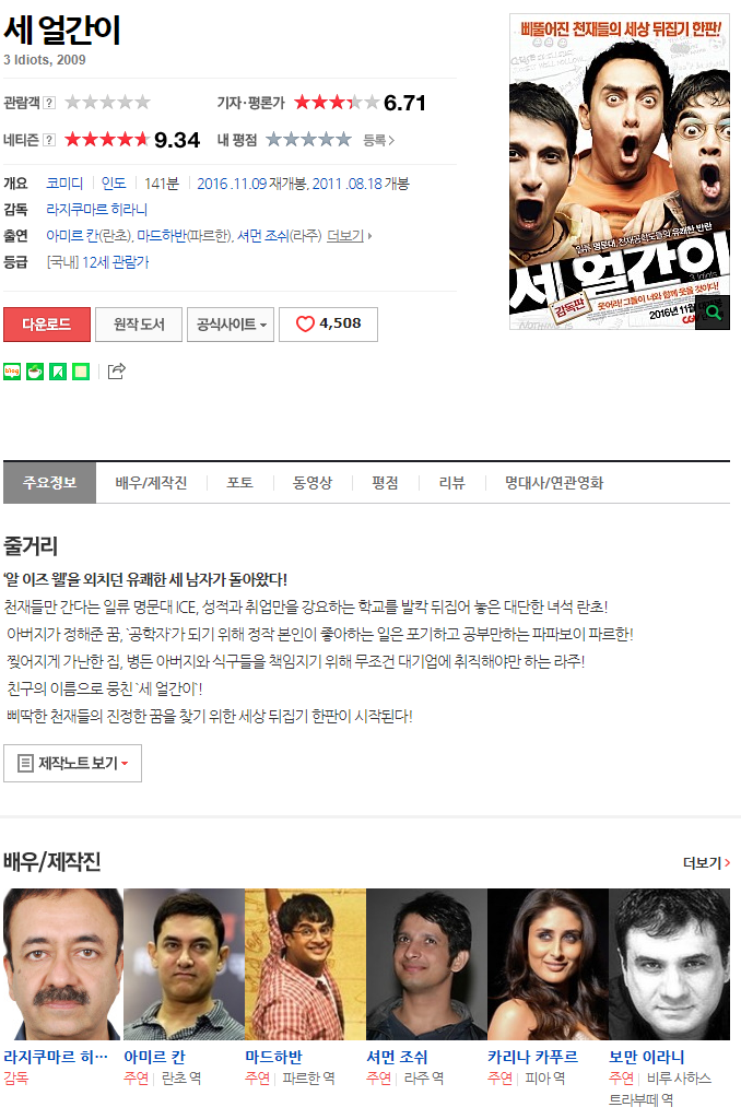 세 얼간이 감독판 ) 삐뚤어진 천재들의 세상 뒤집기 한판0117